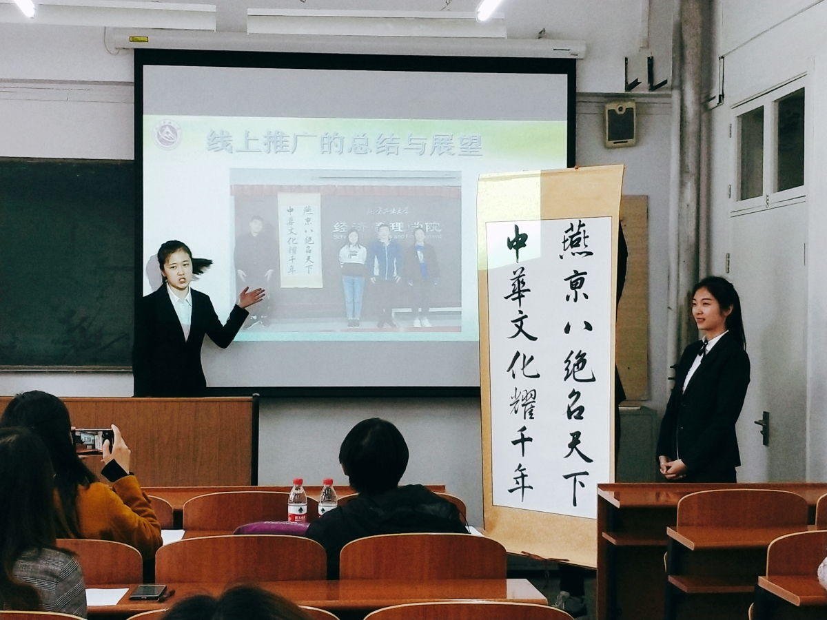 4月16日下午,由校團(tuán)委主辦、經(jīng)濟(jì)管理學(xué)院承辦的首屆非物質(zhì)文化遺產(chǎn)傳承創(chuàng)意營銷大賽決賽在勵學(xué)樓218教室舉行。北京燕京八絕協(xié)會副秘書長、北京燕京八絕藝術(shù)館常務(wù)副館長楊寧老師以及管理系張立章、尚會英兩位老師共同擔(dān)任此次決賽的評委。決賽現(xiàn)場,同學(xué)們展示了各自的創(chuàng)意想法,大家有的結(jié)合校園生活設(shè)計了文創(chuàng)產(chǎn)品,有的結(jié)合新媒體弘揚傳統(tǒng)文化,還有的結(jié)合當(dāng)下非常流行的VR技術(shù)對非遺文化進(jìn)行宣傳。經(jīng)過激烈的角逐,最終李...