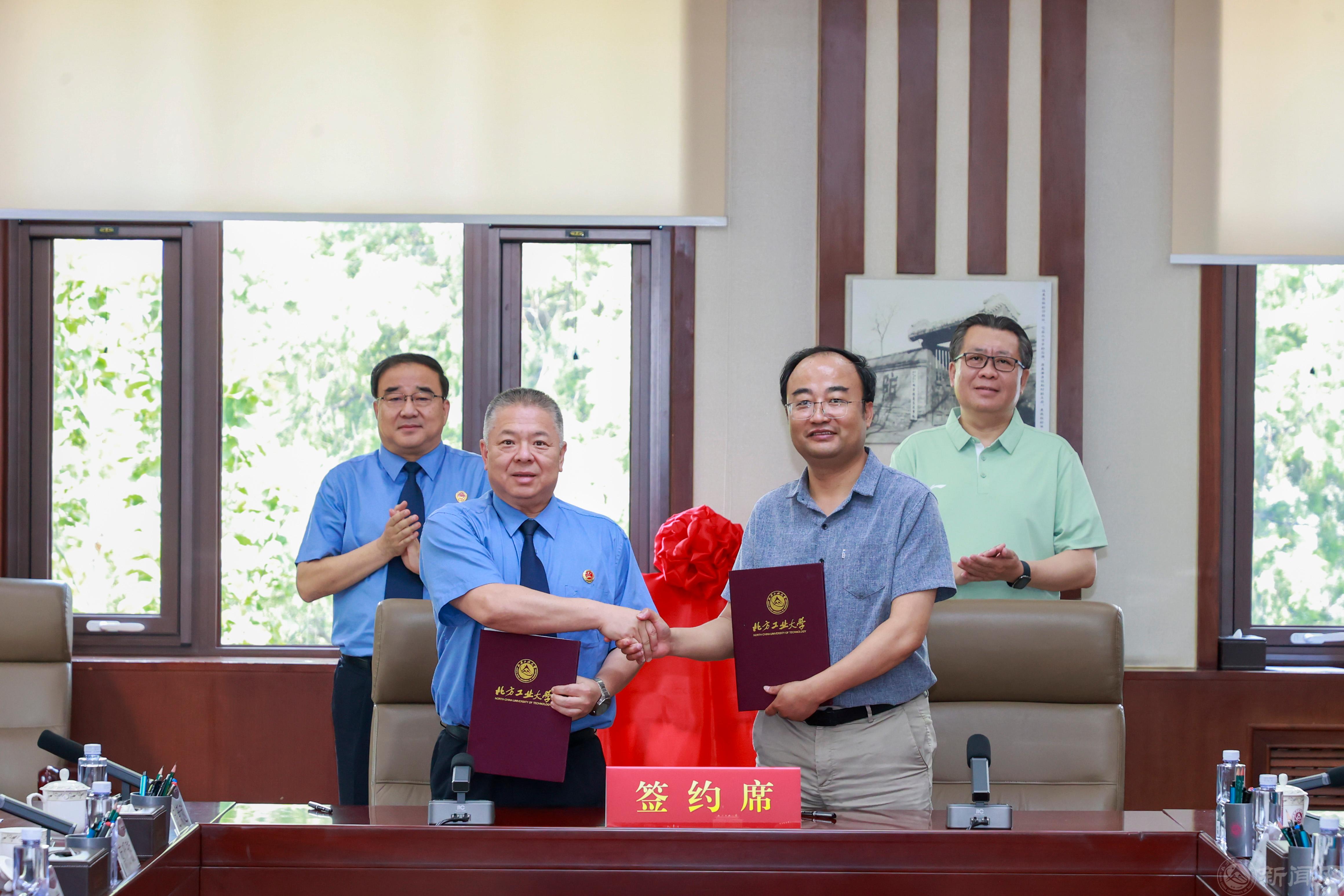 黨組副書記、副檢察長陳速與黨委常委、副校長王力共同簽署檢學共建工作備忘錄。