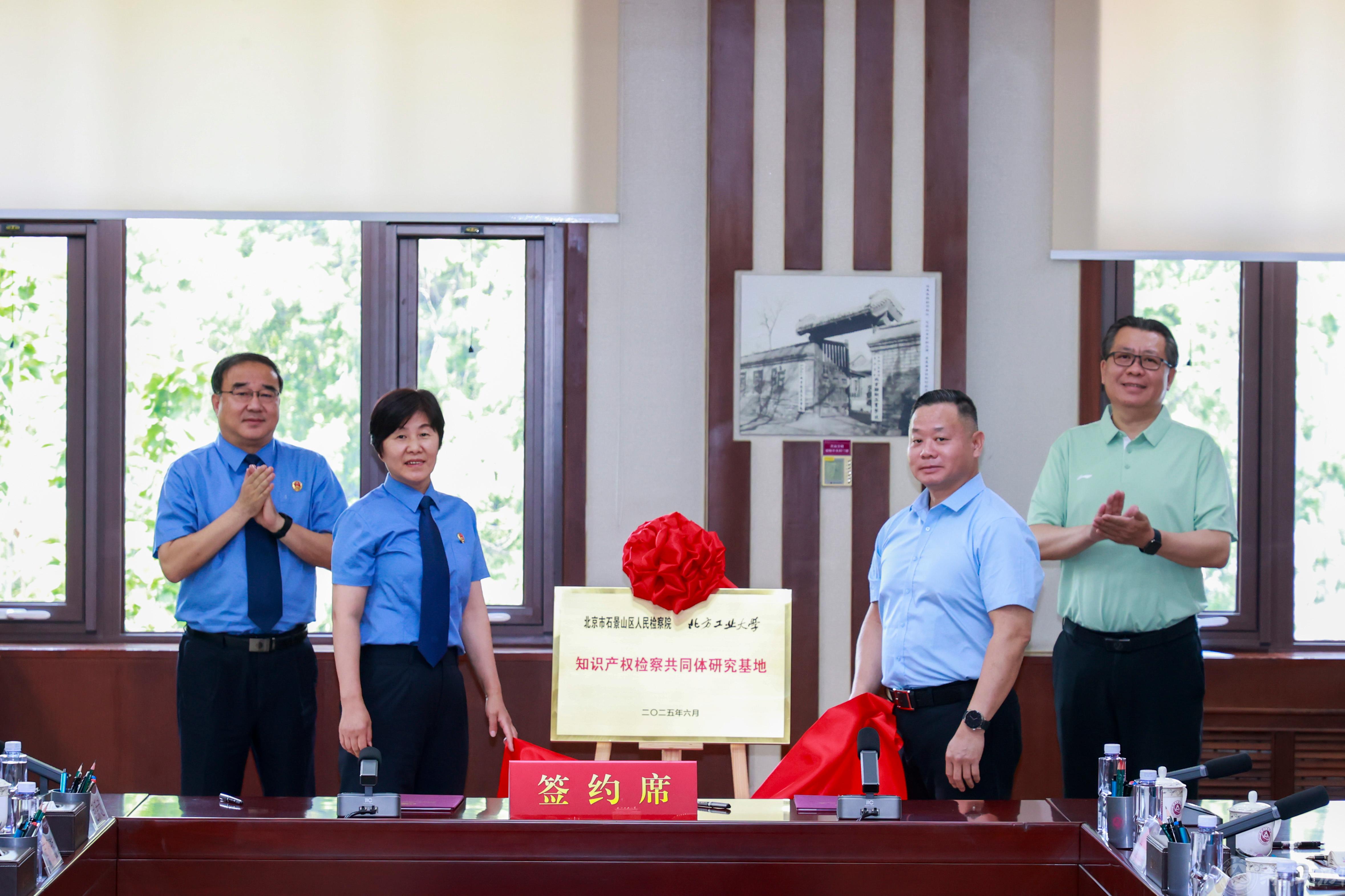 黨組成員、副檢察長楊秀莉與副校長盧曉斌為“知識產權檢察共同體研究基地”揭牌。