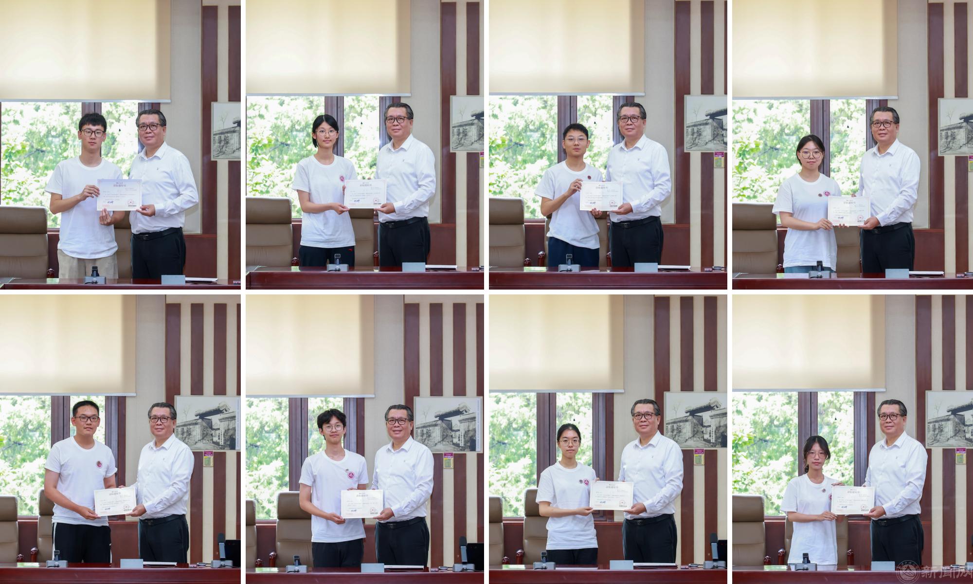教務(wù)處、招生就業(yè)處、學(xué)生工作部負(fù)責(zé)人對部門分管工作作了介紹,為新生及家長們解答了相關(guān)問題。學(xué)校為新生代表贈(zèng)送了校園文創(chuàng)產(chǎn)品,與會人員在敦品樓前合影留念。