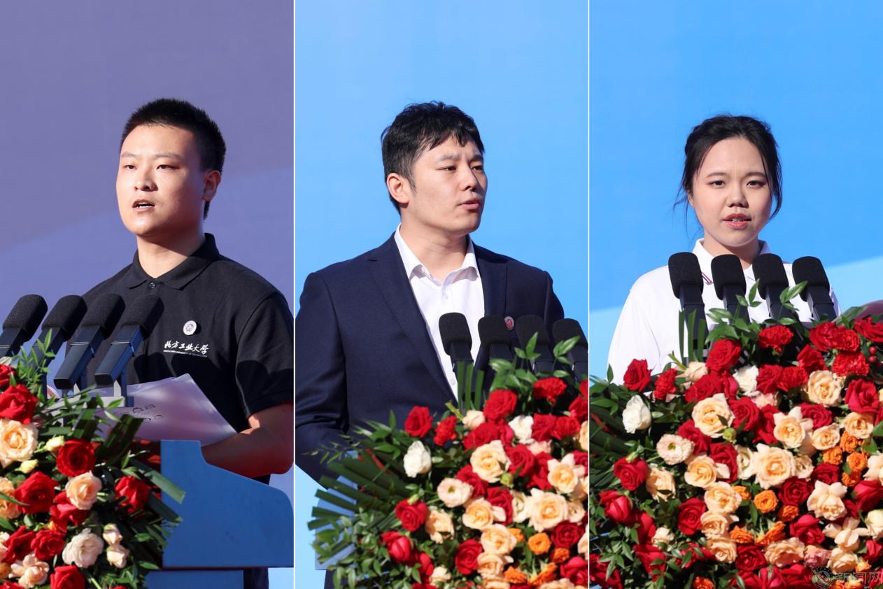儲能科學(xué)與工程學(xué)院副教授朱思遠(yuǎn)代表全體教師發(fā)言。她表示,大學(xué)是一片讓同學(xué)們自由發(fā)問、勇敢探索的原野。希望大家永葆探索的勇氣,鍛造責(zé)任的棱角,修煉清醒的自我,不負(fù)韶華,勇敢逐夢。計算機(jī)95級校友、北京理工大學(xué)特聘教授張華平表達(dá)了重返母校的感慨與感激,回顧了在母校學(xué)習(xí)生活的點(diǎn)點(diǎn)滴滴,希望同學(xué)們在校訓(xùn)校風(fēng)中淬煉品格,堅持創(chuàng)新為國、天下為先、合而為盟、超越為我,在“四為之道”中尋找人生方向,用青春書寫屬于這一代人的輝煌。
