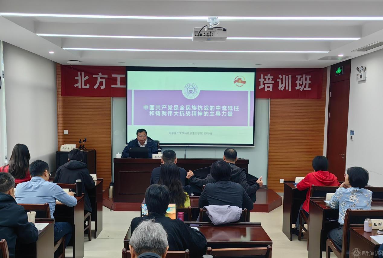 江蘇省社會主義學院教研室主任、一級調研員任世紅教授作《習近平總書記關于做好新時代黨的統一戰線工作的重要思想》專題授課,南京理工大學馬克思主義學院邵瑋楠副教授作《中國共產黨是全民族抗戰的中流砥柱和鑄就偉大抗戰精神的主導力量》專題授課。