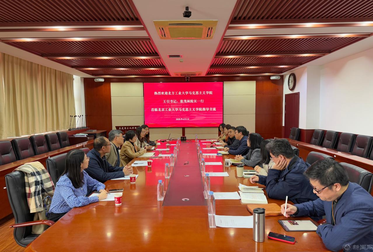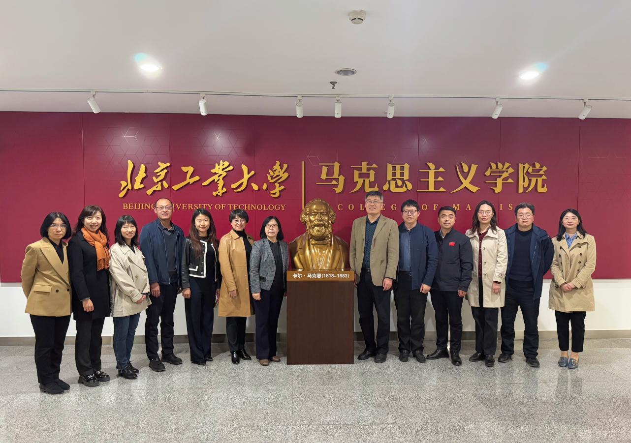 為學(xué)習(xí)北京市重點(diǎn)馬克思主義學(xué)院及思政課建設(shè)的先進(jìn)經(jīng)驗(yàn),4月3日下午,我校馬克思主義學(xué)院黨委書(shū)記王引、黨委副書(shū)記、院長(zhǎng)張茂林率隊(duì)一行前往北京工業(yè)大學(xué)馬克思主義學(xué)院進(jìn)行調(diào)研交流。北京工業(yè)大學(xué)馬克思主義學(xué)院黨委書(shū)記安哲鋒、黨委副書(shū)記、院長(zhǎng)丁云等領(lǐng)導(dǎo)熱情接待并出席了調(diào)研座談會(huì)。