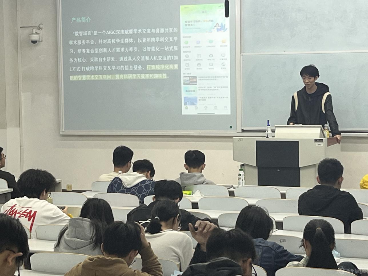 會上,張恩鑫、郭競天分別以"運算放大器的芯片設計驗證與測試"、"數智域言"為案例,深入淺出地講解項目開發過程中的關鍵環節,通過流程圖展示、代碼片段解析和相關視頻播放等多種形式,讓在場同學對項目開發有更加直觀的認識。為增強學生活動參與感,本次分享會采用"講座+互動+抽獎"的多元形式,引導同學們主動思考與學習。互動抽獎活動使現場氣氛熱烈,同學們積極參與、收獲頗豐。