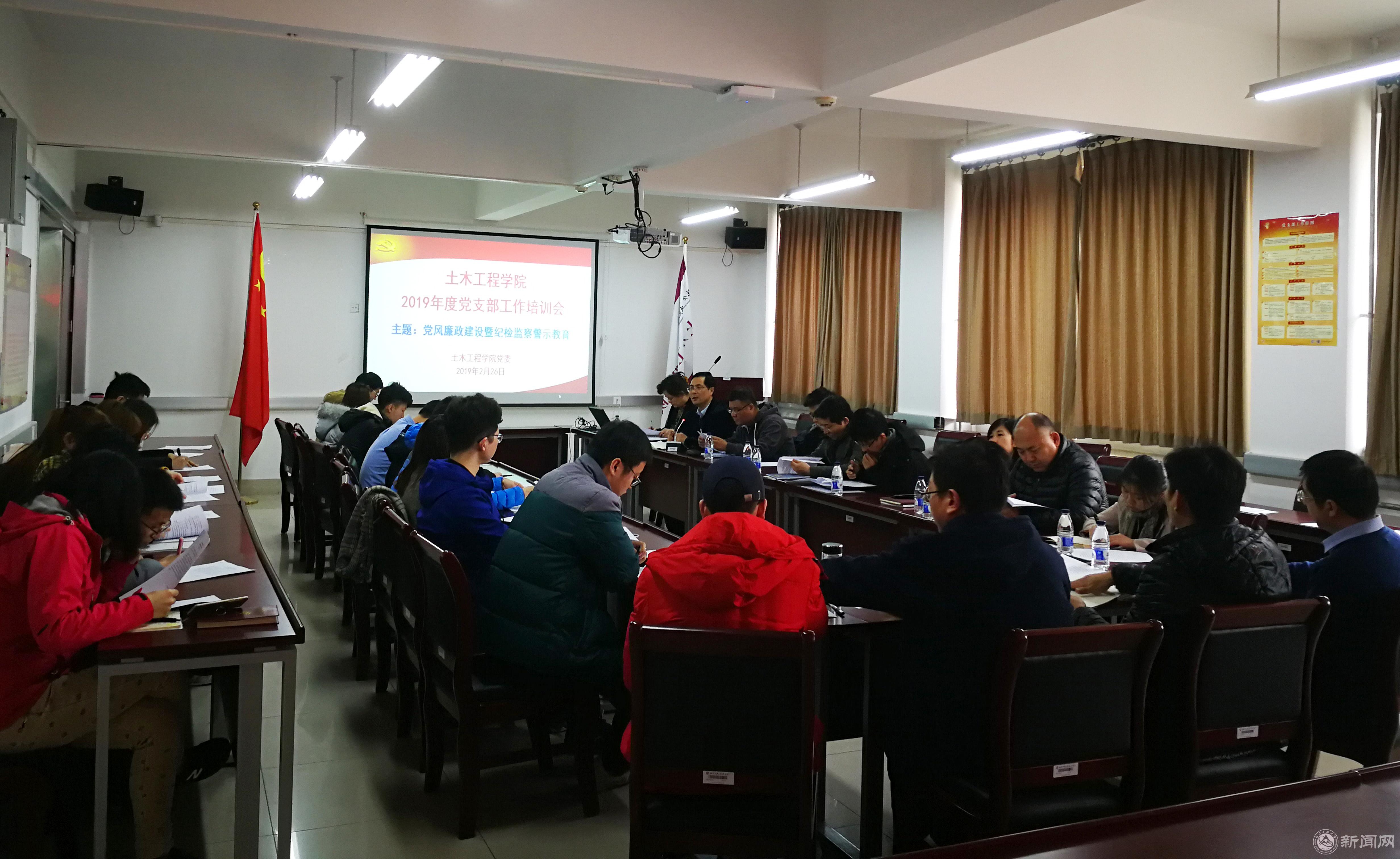 2月26日下午,土木工程學院在浩學樓1103會議室召開2019年黨支部工作培訓會,主題為黨風廉政建設暨紀檢監察警示教育。學院黨委書記、副書記、各支部書記、支委以及黨務秘書共計45人參加了會議。會議由學院黨委書記劉婉立主持。