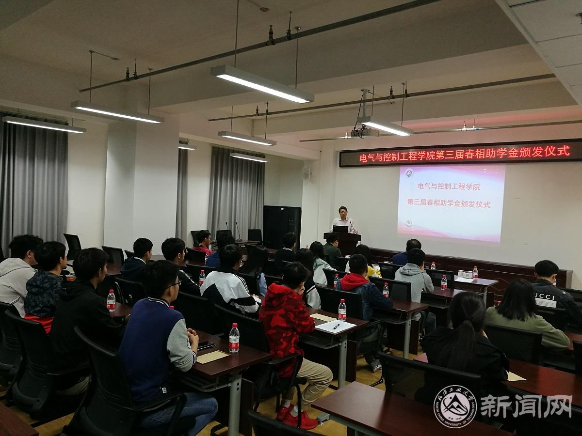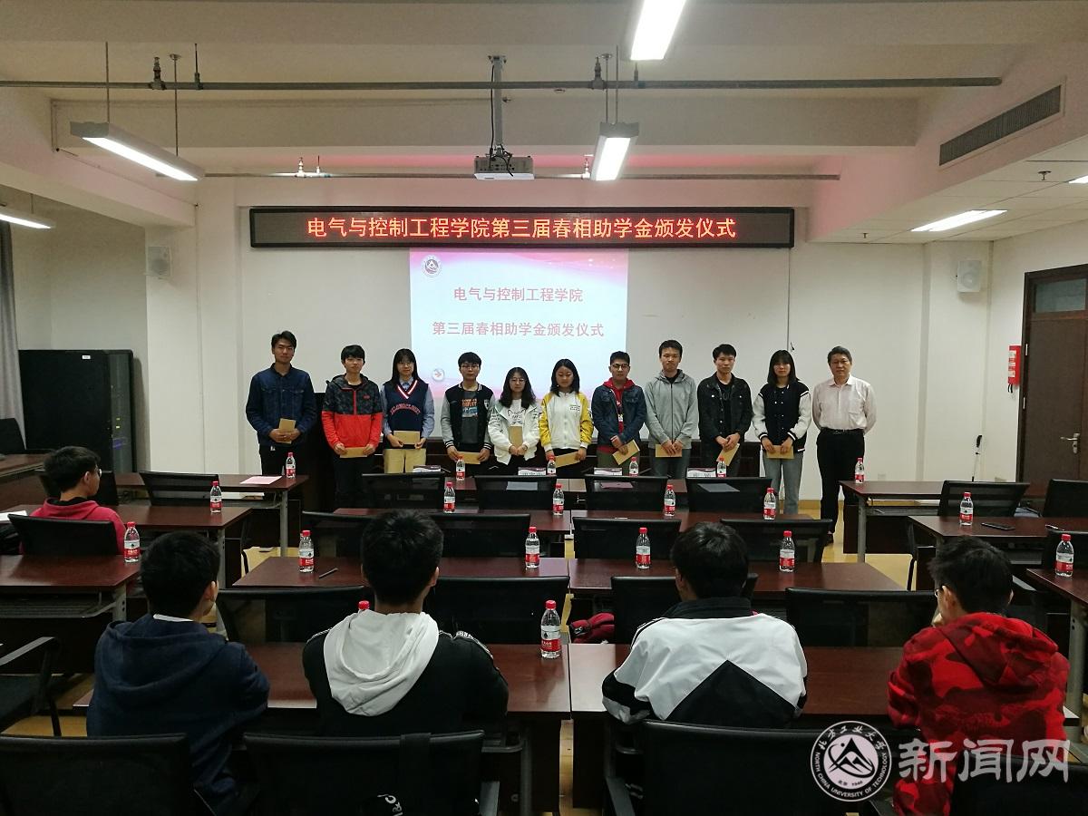 4月24日,電氣與控制工程學(xué)院在博遠(yuǎn)樓452舉行第三屆春相助學(xué)金頒發(fā)儀式。學(xué)院院長(zhǎng)王力、特別代表武家申、輔導(dǎo)員庫(kù)穎及獲助的20名學(xué)生參加儀式。儀式由院黨委副書記史寧主持。