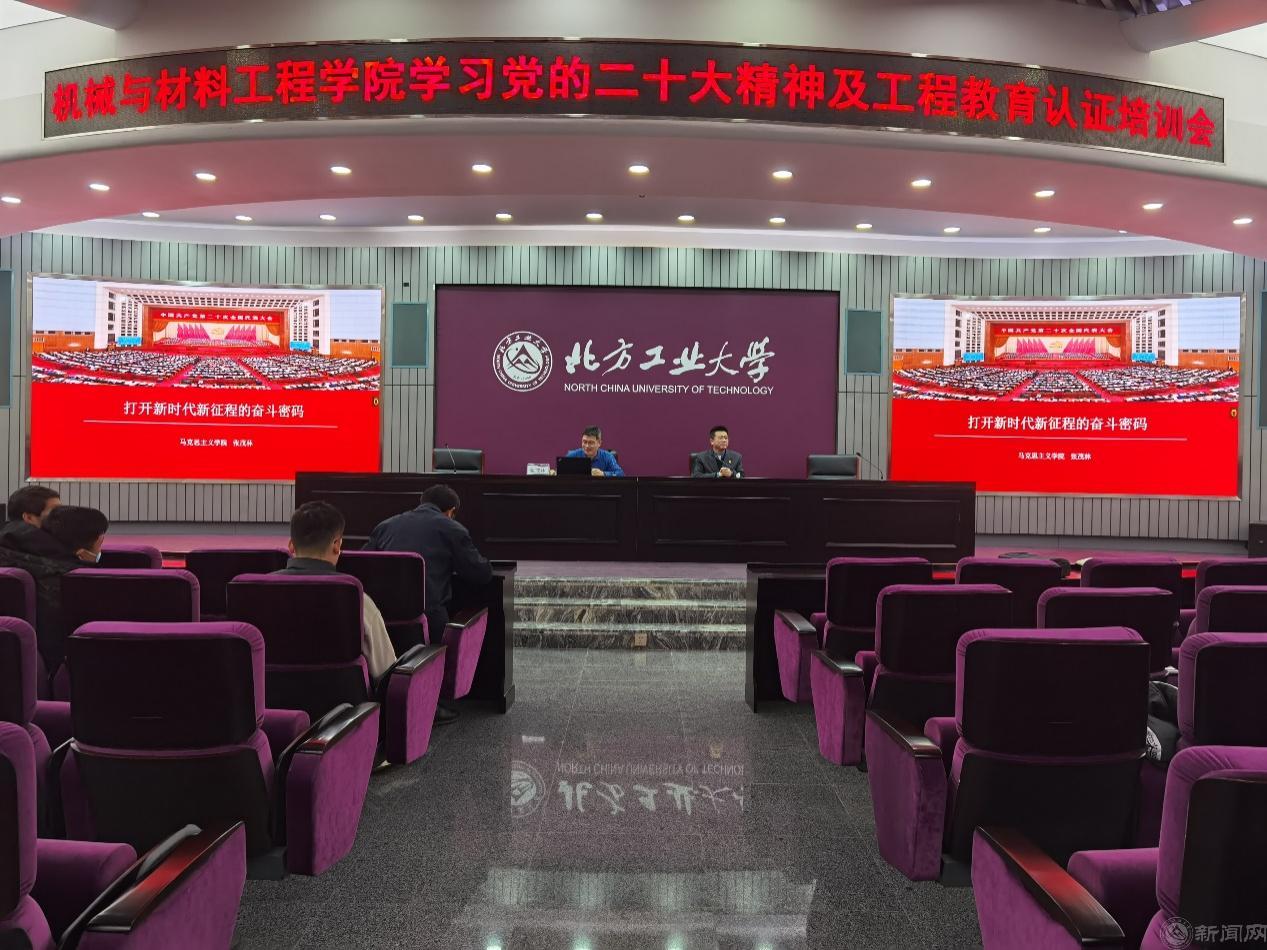 11月11日上午,機械與材料工程學院在廣學樓報告廳舉辦黨的二十大精神專題學習宣講會。馬克思主義學院黨委書記、北京市教學名師張茂林應邀作專題學習宣講報告。全體院班子成員和教師、學生代表參加。院黨委書記王文革主持報告會。