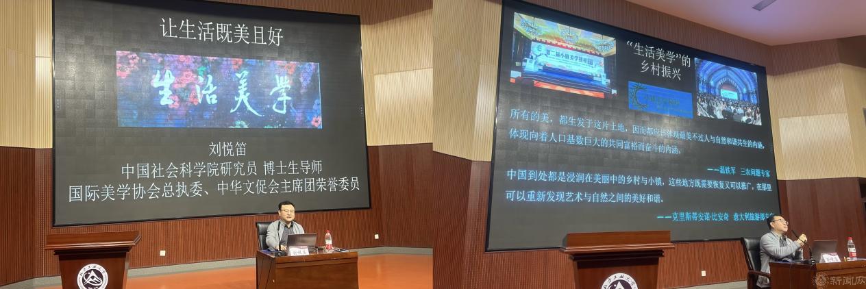 在講座中,劉悅笛指出,中國的傳統(tǒng)美學(xué)是一種“生活美學(xué)”,體現(xiàn)了古人的精神追求和生活智慧。他介紹了中國古典生活美學(xué)中的相關(guān)“美”景,如“天氣時(shí)移”的天之美、“地緣萬物”的地之美、“鑒人貌態(tài)”的人之美、“飲饌品味”的食之美、“長物閑賞”的物之美、“幽居雅聚”的居之美、“山水悠游”的游之美等。感受、體驗(yàn)到這些美,就會(huì)讓我們的日常生活有詩意、有情趣起來。他說,美育就是生活本身,人人可以成為“生活藝術(shù)家”;我們要向美而生、循美而行,創(chuàng)造更加美好的生活。