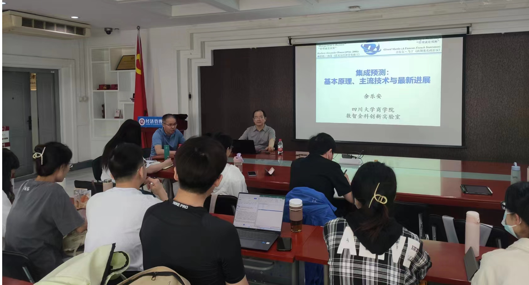 6月2日下午,應經濟管理學院邀請,四川大學商學院特聘教授余樂安來校進行講學,在勵學樓301會議室為我校師生作了題為“集成預測:基本原理、主流技術與最新進展”的學術報告。報告會由經濟系主任王書平教授主持。本報告主要介紹集成預測方法的基本原理、核心技術與最新進展。報告首先介紹預測技術的主要分類及其發展;其次,講述了集成預測的基本思想與基本原理;再次,針對現有集成預測技術,重點分析了混合集成預測發展中的三...