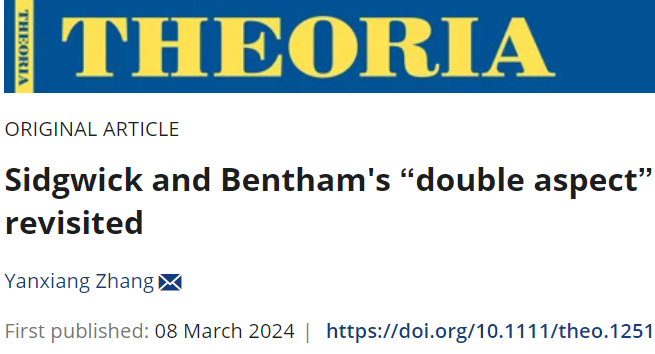 國際人文頂尖期刊Theoria(《沉思》)于2024年3月8日在線刊發了文法學院張延祥副教授獨立撰寫的長篇研究論文:SidgwickandBentham’s‘DoubleAspect’ofUtilitarianismRevisited(論邊沁《憲法典》的人性論基礎)。Theoria創刊于1935年,一直是眾多世界著名思想家研究成果的刊發平臺,在人文研究領域享有崇高聲譽,被國際人文研究領域的各個權威期刊目錄收錄,其中包括兩大人文權威期刊索引目錄A&HCI(藝術與人文索引目錄)和S...